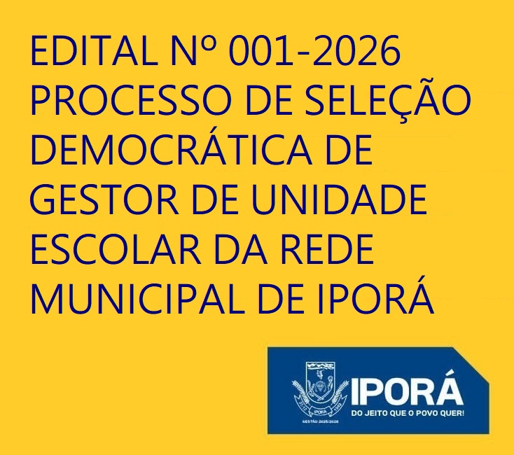 EDITAL Nº 001-2026 PROCESSO DE SELEÇÃO DEMOCRÁTICA DE GESTOR DE UNIDADE ESCOLAR DA REDE MUNICIPAL DE IPORÁ assinadoBaixar